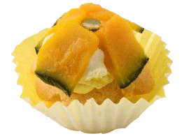 | 香ばしく焼き上げたタルト生地に、かぼちゃクリームを絞り、かぼちゃをゴロゴロとトッピングしました。 | |